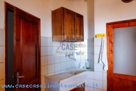 All’ingresso si trova un disimpegno che introduce alla cucina abitabile, spaziosa e luminosa, con un affaccio suggestivo sui tetti in coppi e sulla vallata. La cucina conserva un antico lavello in marmo, dettaglio autentico del fascino toscano.