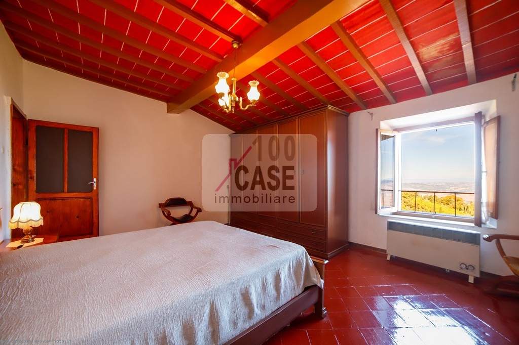 La zona notte comprende due camere matrimoniali, di cui una particolarmente ampia, con il pavimento originale in mattoni rossi d’epoca. Tutti gli ambienti offrono viste aperte e panoramiche sul paesaggio circostante.