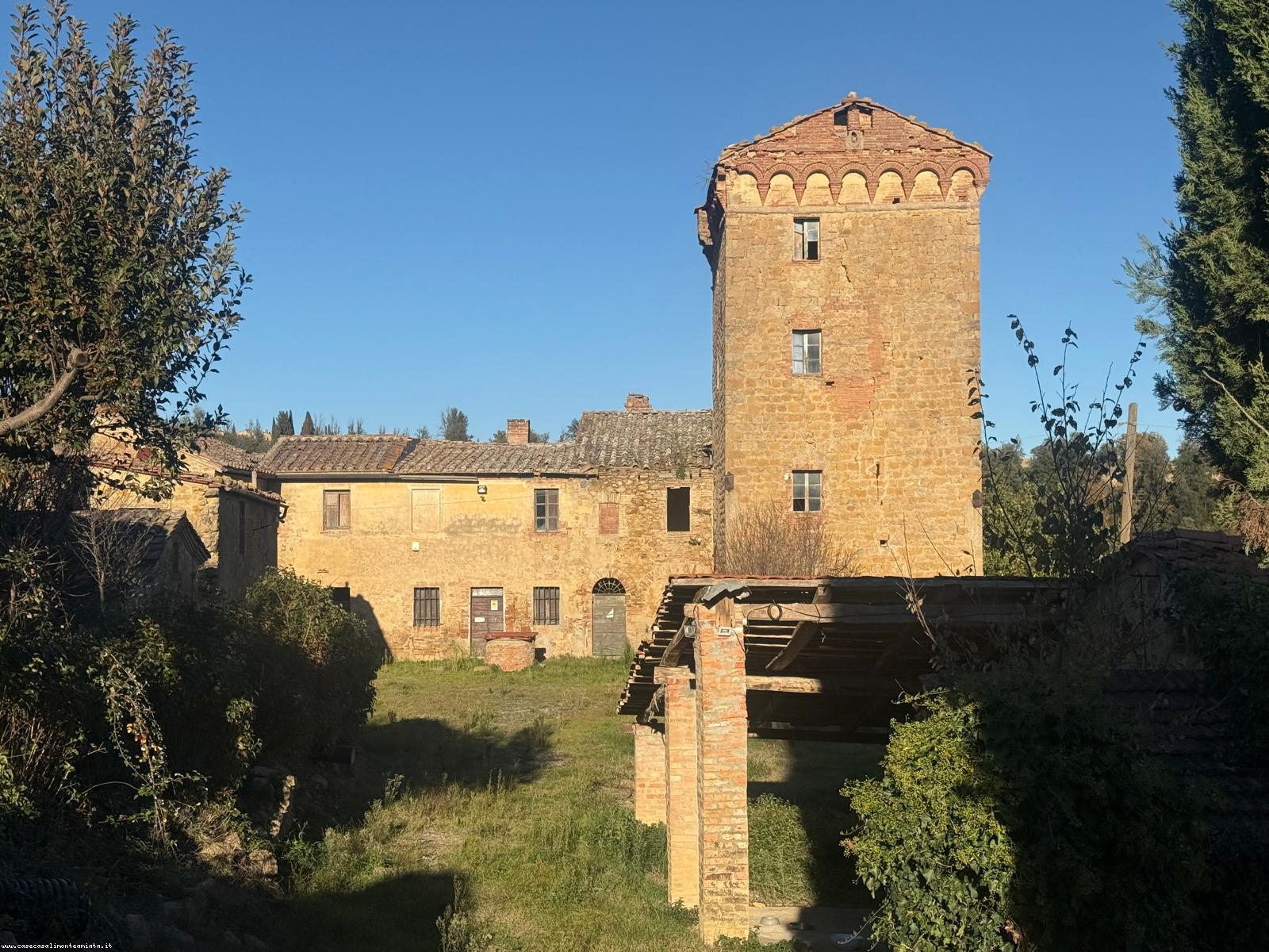 Il casolare principale, sviluppato su due livelli, dialoga armoniosamente con una torre del XVI secolo, che si eleva su quattro piani come un punto di osservazione privilegiato sul paesaggio circostante, collegata internamente da una scala che accompagna il visitatore in un viaggio nel tempo.