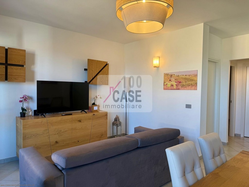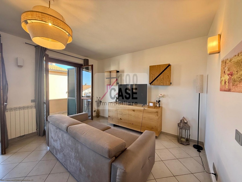 L’interno, recentemente rinnovato, si distingue per ambienti curati e accoglienti, arredati con gusto e valorizzati da arredi in parte realizzati artigianalmente, espressione di qualità e autenticità. La zona giorno si sviluppa in un soggiorno luminoso aperto sul cucinotto, con accesso diretto al terrazzo, perfetto come naturale prolungamento degli spazi abitativi.